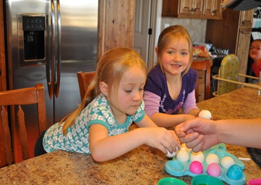 Josh took the kids to the school carnival and while they were gone my Mom helped me boil eggs so when the kids got home they could color them. My brother and sister in law came over to see us and they came just in time to color eggs with us! The kids had so much fun coloring eggs this year, it seems like the older they get the more involved they can be and they love it. My brother was like a kid all over again he was having so much fun, it was fun to watch him. Jaxon was asleep but he woke up after the eggs were all colored so we let him see the final project and he loved those eggs. He picked them up and was hitting them into each other and he was so excited, we were all laughing so hard, it was funny funny! We had a fun night coloring eggs!!