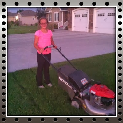 Maddy has learned how to mow the lawn this summer and the best part about it is she loves doing it and she does a really good job. Maddy is such a big helper and is always willing to help out wherever I need help, I love this sweet girl.