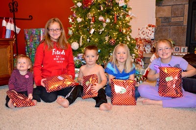 We had the best Christmas Eve ever with a new puppy!! After we got Anna all clean we opened our tradition of Christmas Eve Jammies and we blow dried Anna so she wouldn’t be cold. The kids had so much fun fluffing Anna up and making her all clean and of course they loved their new warm jammies!!